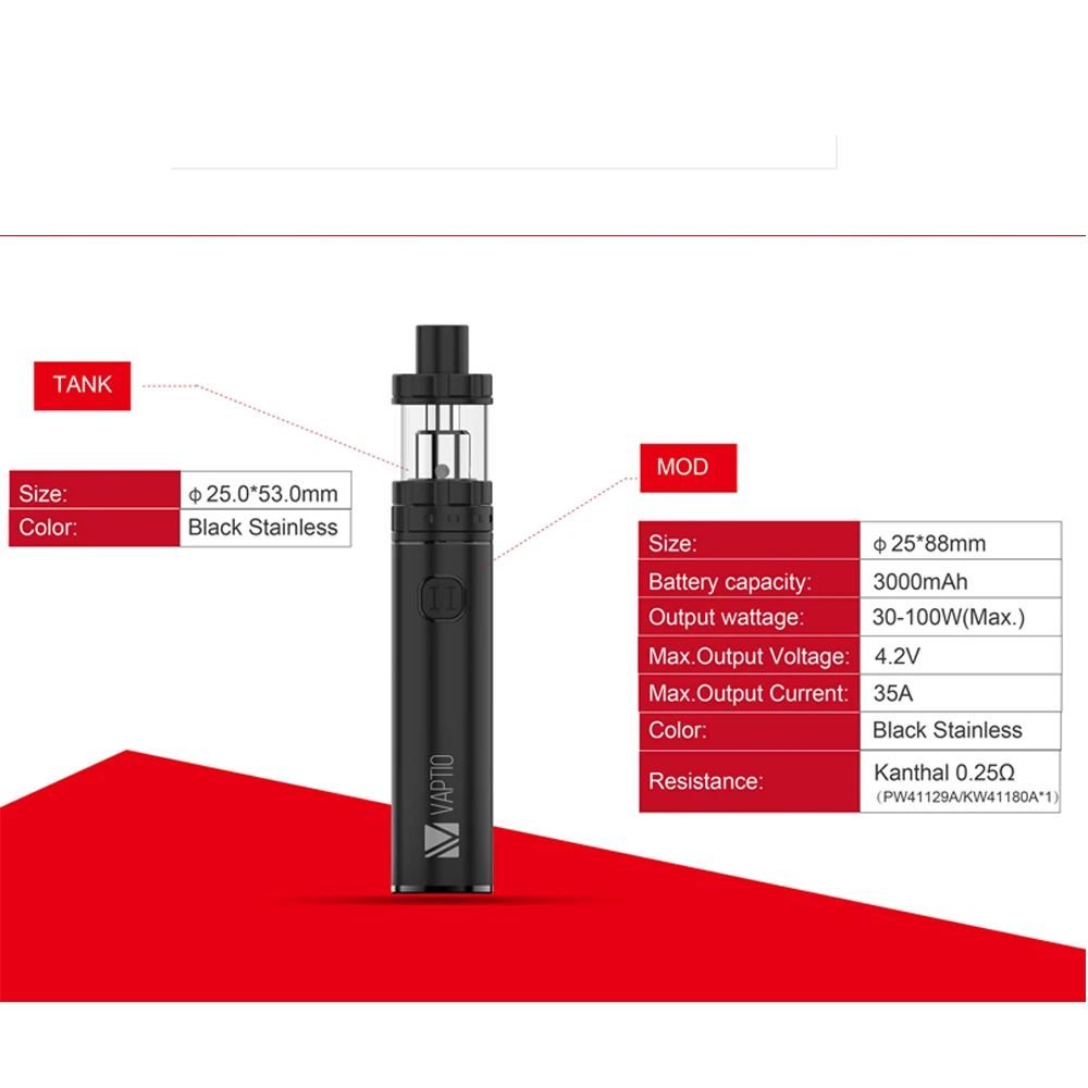 3000mAh vape mod Vaptio C2 Starter Kit with 100W power & Long-last Battery 2ml Atomizer Electronic cigarette Vape Pen