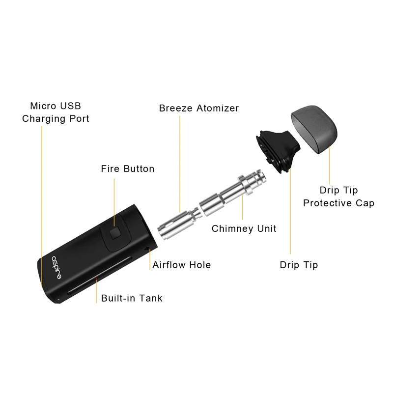 Original Aspire Breeze Kit with Breeze Charging Dock 2ml Electronic Cigarette Vape Kit 650mAh Battery E Cigarettes Vaporizer